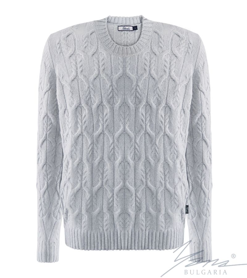 Men's thick wool round neck sweater light gray