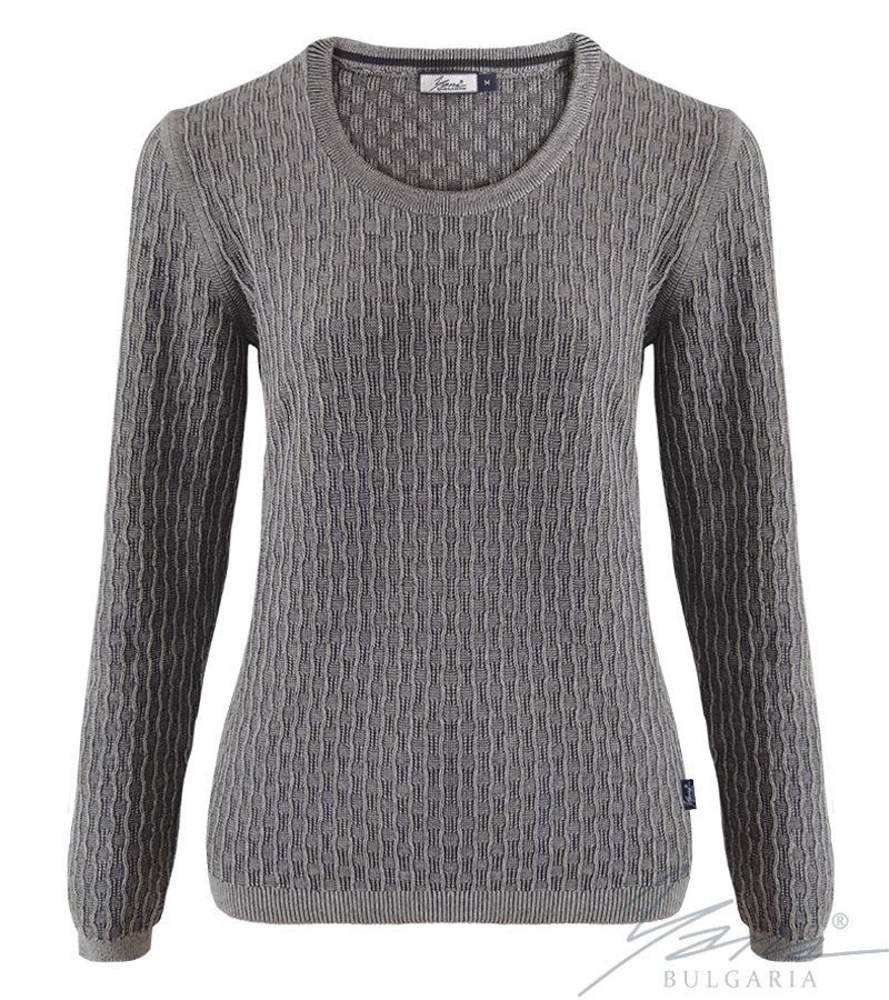 The cotton sweaters of "YANA" Ltd. in structural knit with long sleeves and O-neck are extremely convenient and comfortable to wear, thanks to the best knitting world practices used. Highest production standards for 100% cotton. The most environmentally friendly finish thanks to the Swiss company THIES GmbH. The shirt has a stylish cut, in line with the latest fashion trends, fully fashion knitted, without cutting. The latest colors for the Spring-Summer season. Ideal for the city, for sea and mountains.