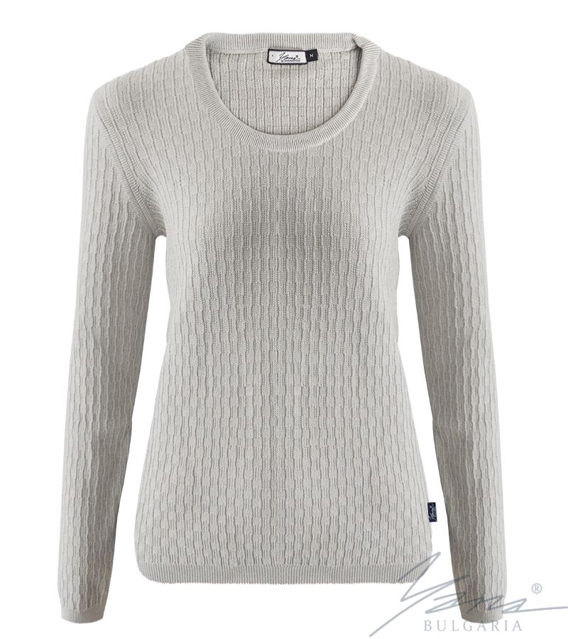 The cotton sweaters of "YANA" Ltd. in structural knit with long sleeves and O-neck are extremely convenient and comfortable to wear, thanks to the best knitting world practices used. Highest production standards for 100% cotton. The most environmentally friendly finish thanks to the Swiss company THIES GmbH. The shirt has a stylish cut, in line with the latest fashion trends, fully fashion knitted, without cutting. The latest colors for the Spring-Summer season. Ideal for the city, for sea and mountains.