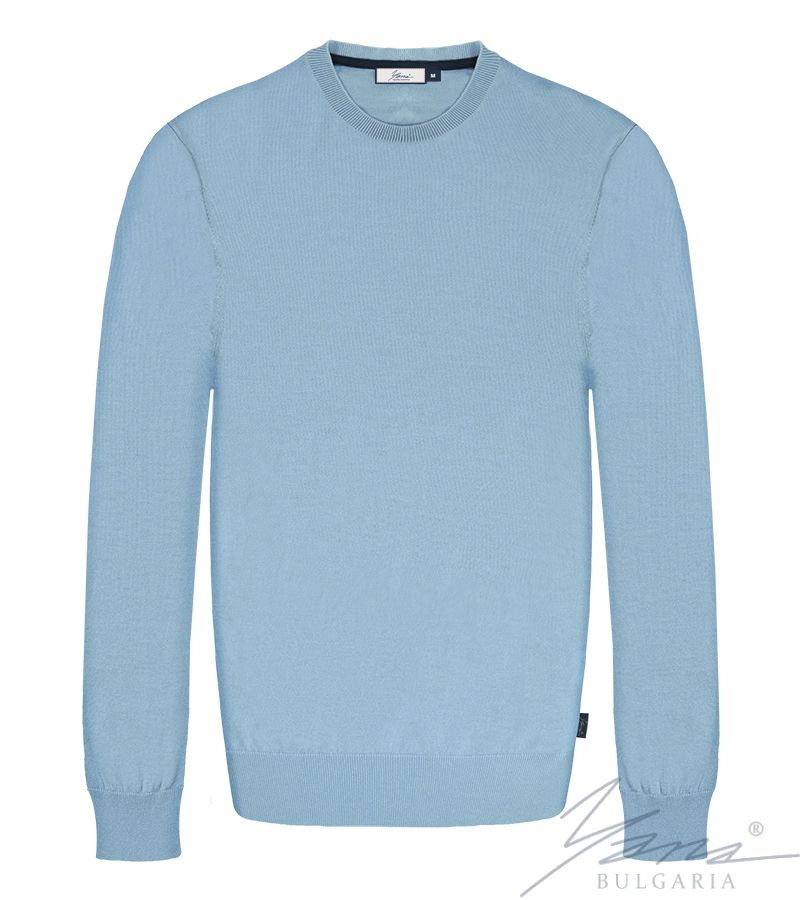 Men's round neck sweater, long sleeves, light blue
